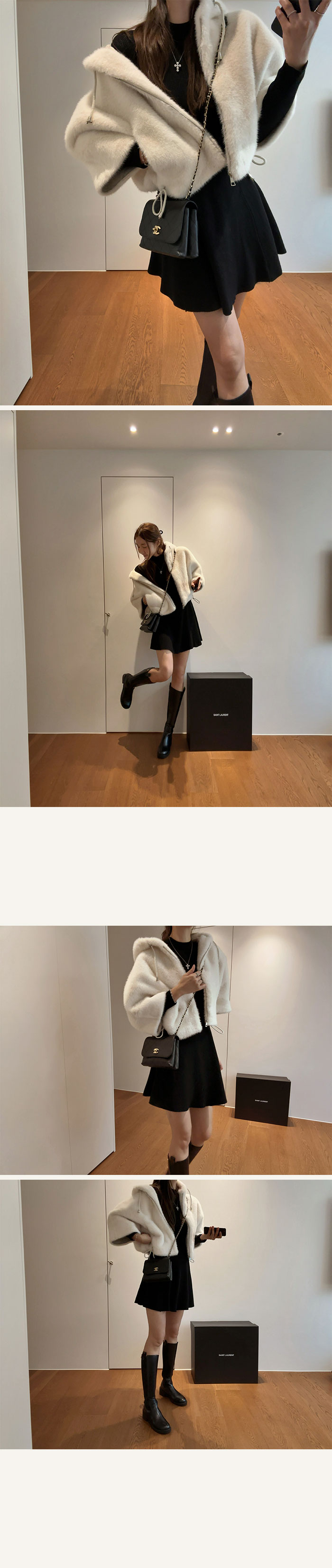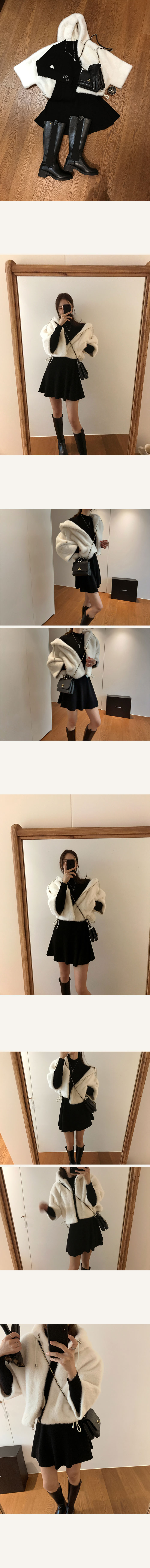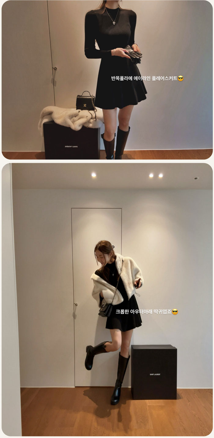 미니 기장감이지만 살짝 반목 디자인으로 겨울에 착용해도