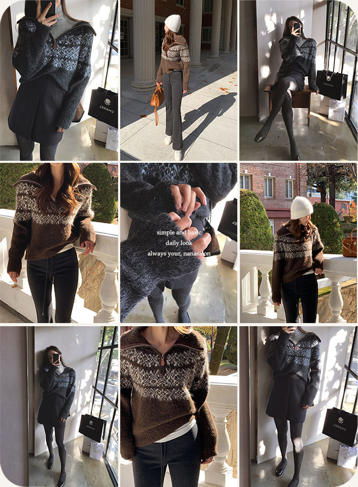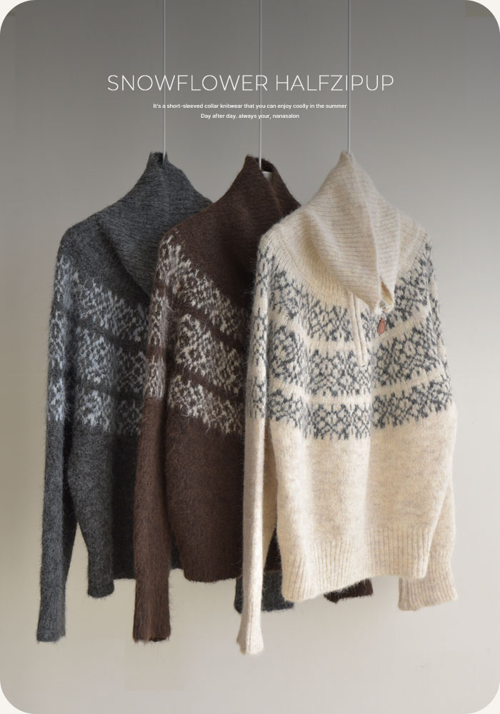 노르딕 패턴에 목까지 폭닥해지는 반집업까지