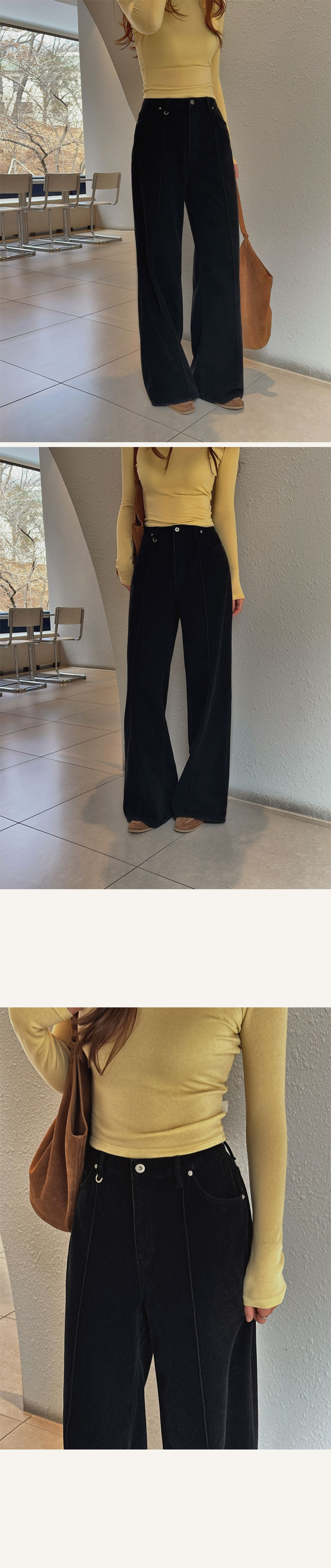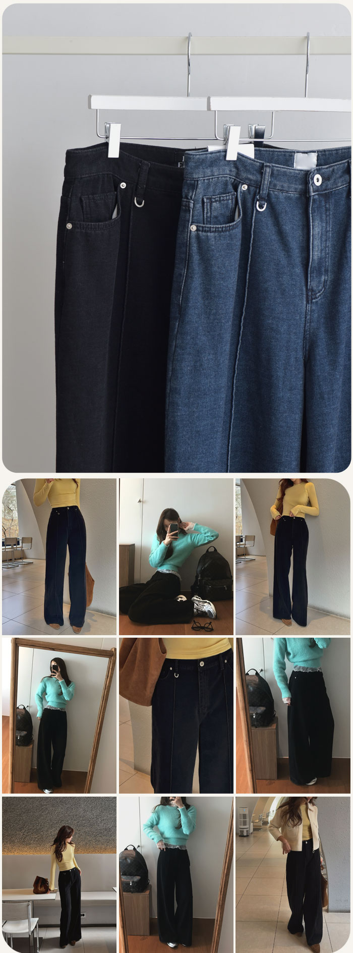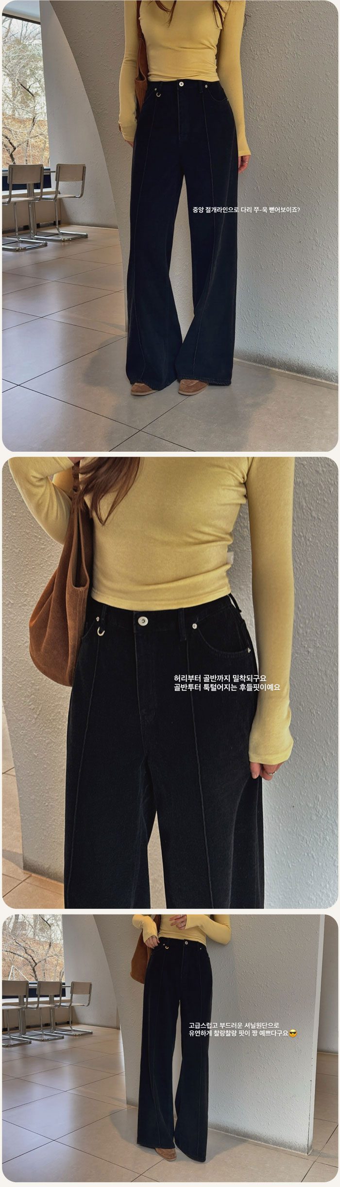 여유로운 와이드핏으로 다리 라인이 드러나지 않아