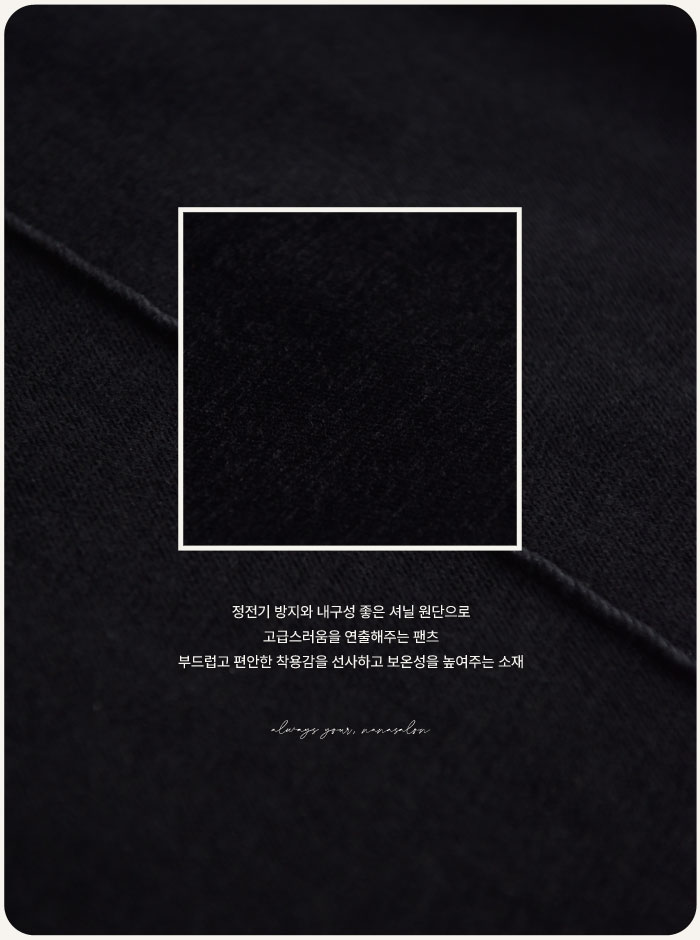 마찰감이 없는 부드럽고 고급스러운 원단감으로 클린한 핏이 연출되며