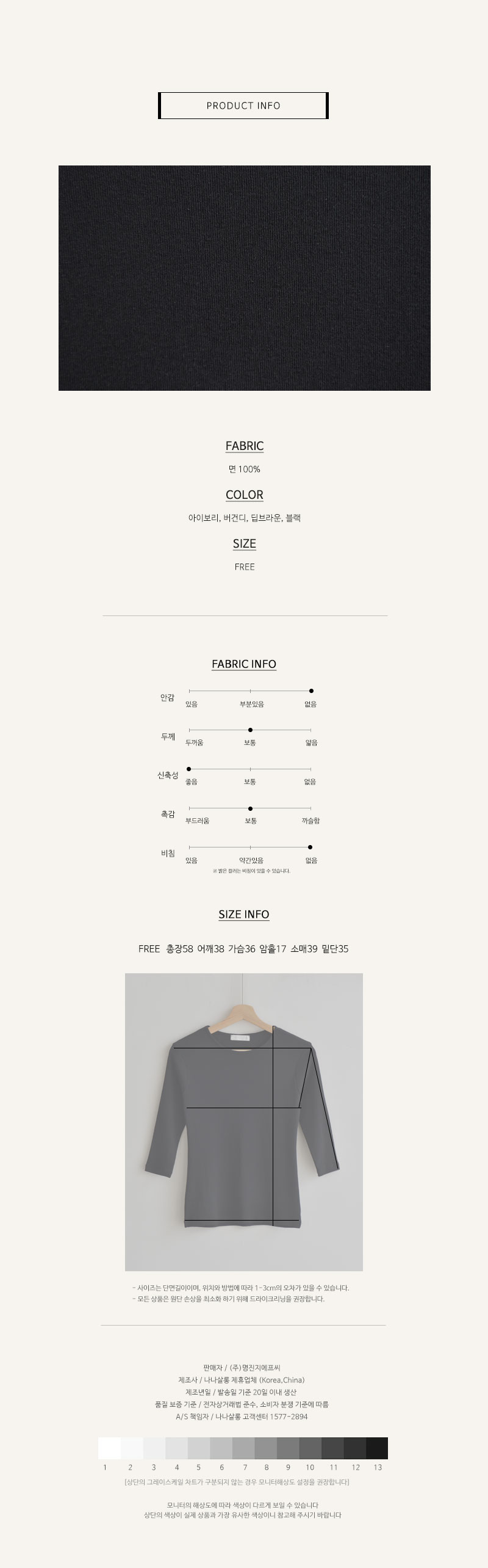 기본템이지만 답답해보이지않는 7부 티셔츠