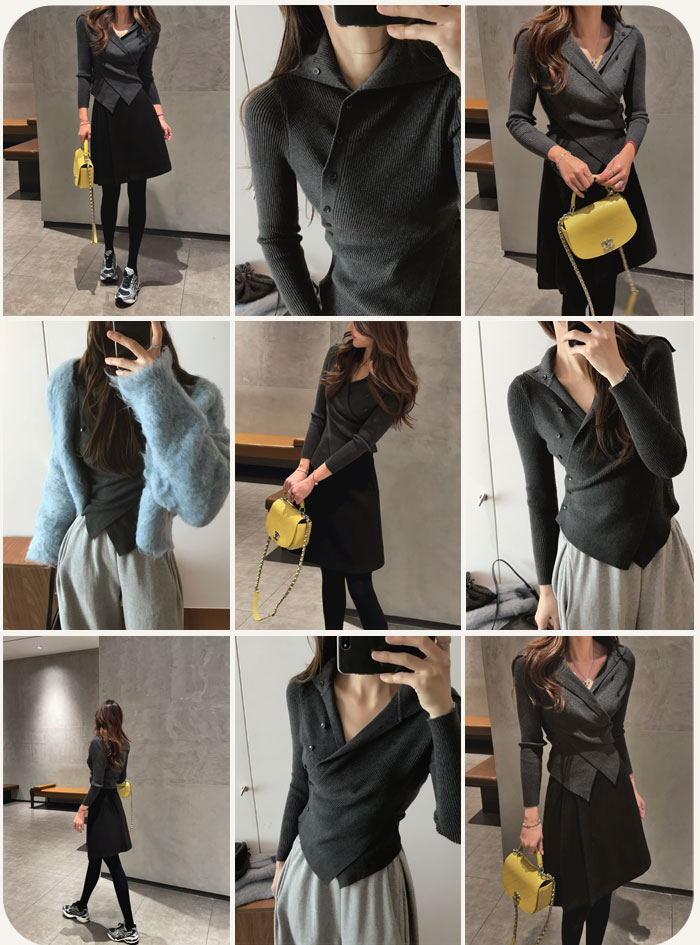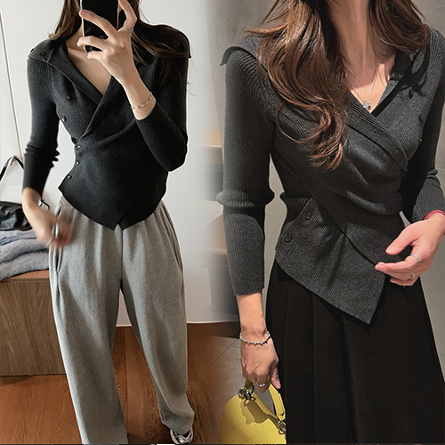버튼 랩 골지 니트예요