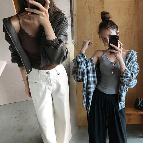 예전부터 이런 레이스 나시나, 실키한 나시에 자켓을 걸치거나
