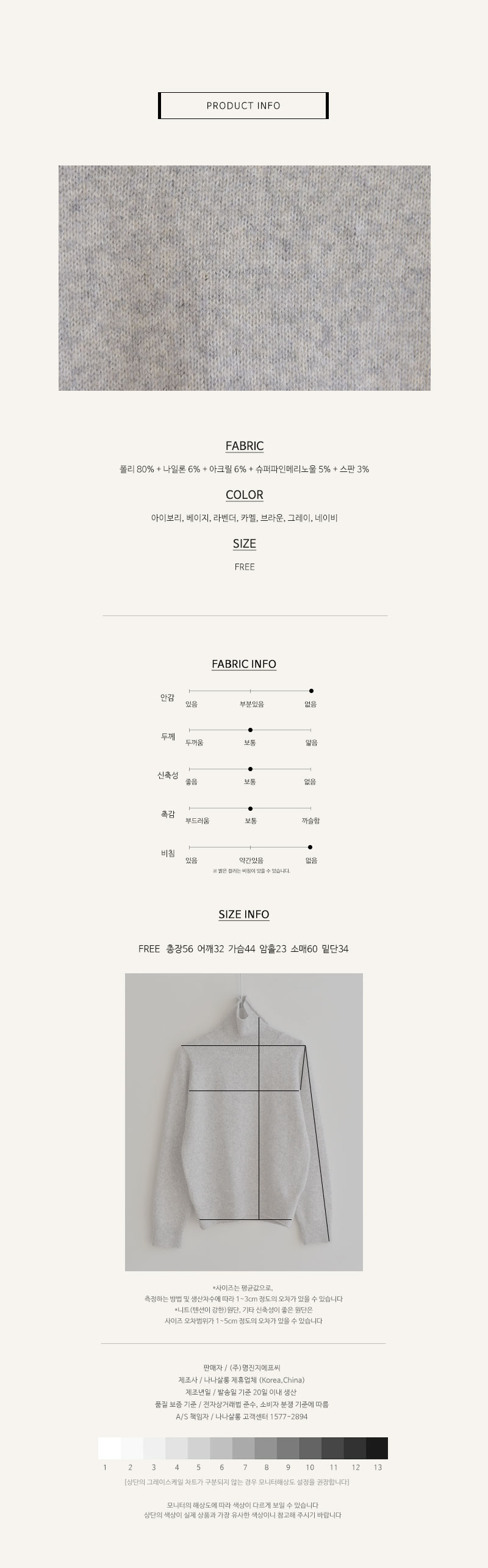 FREE 사이즈 니트예요 평소 M사이즈를 착용하는 저에게