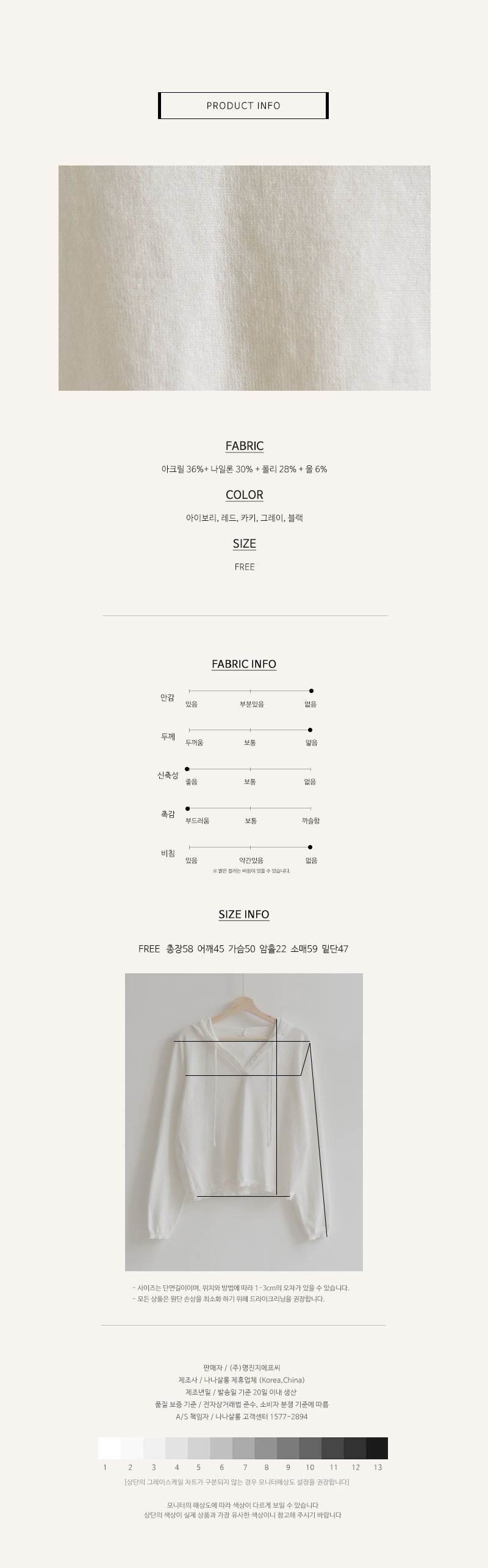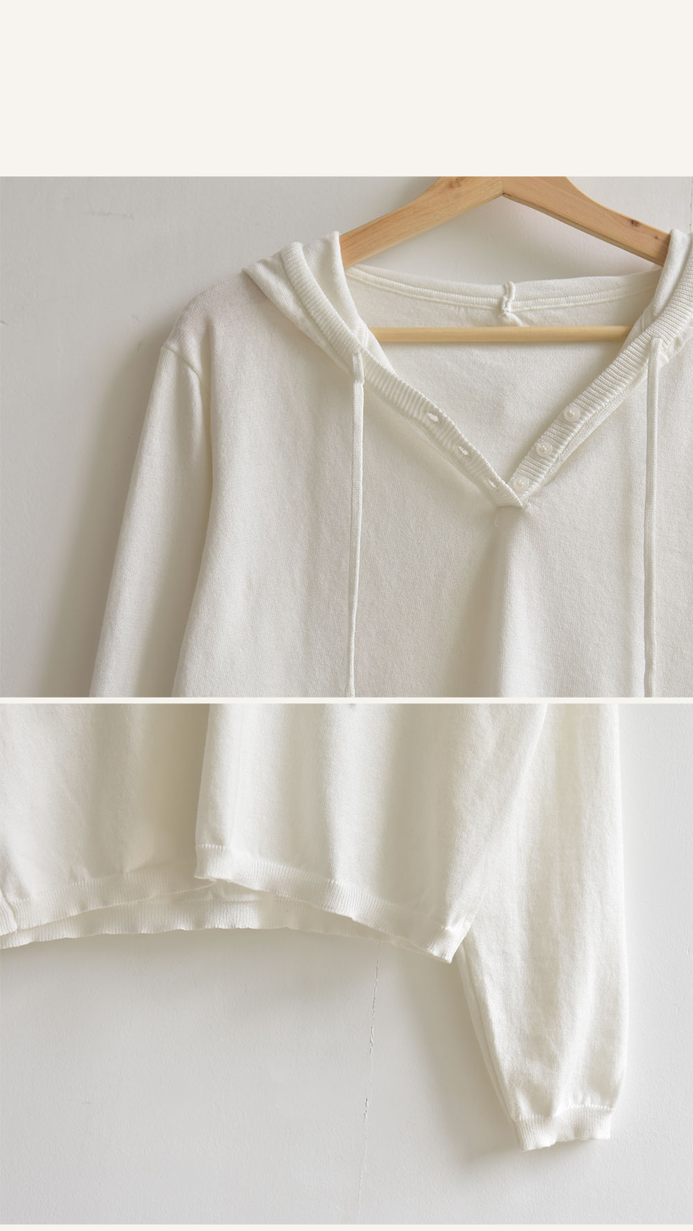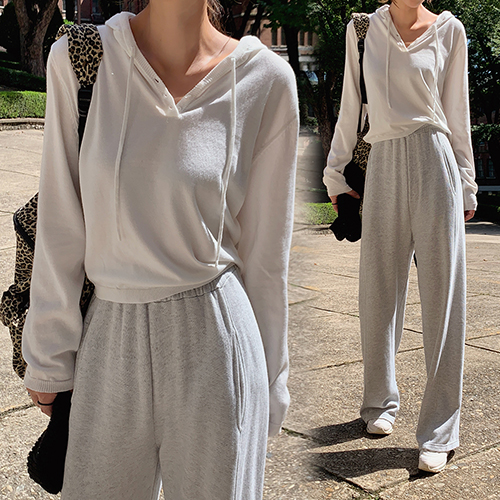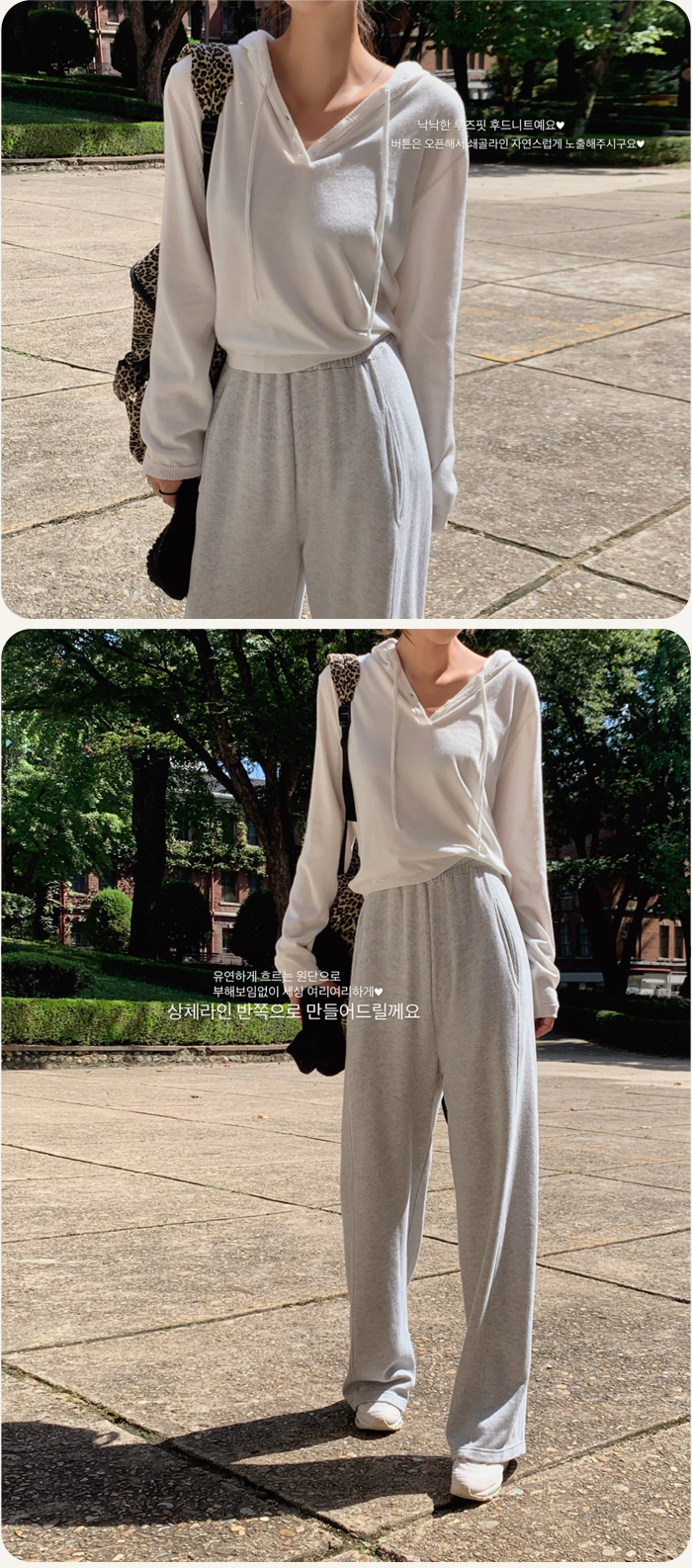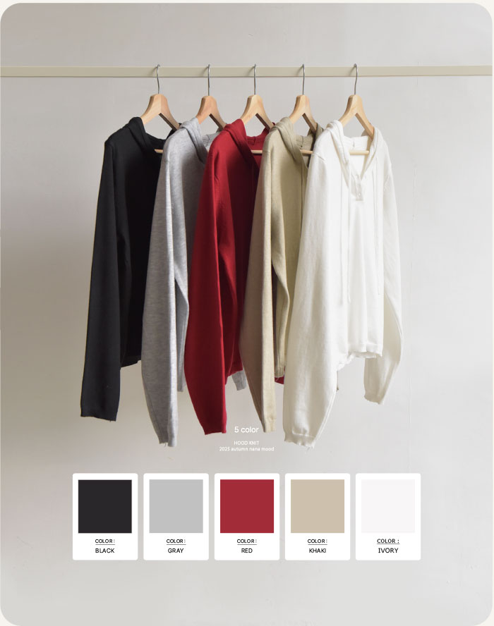 부드럽고 가벼운 니트 원단에 후드가 달려 캐쥬얼한 느낌으로