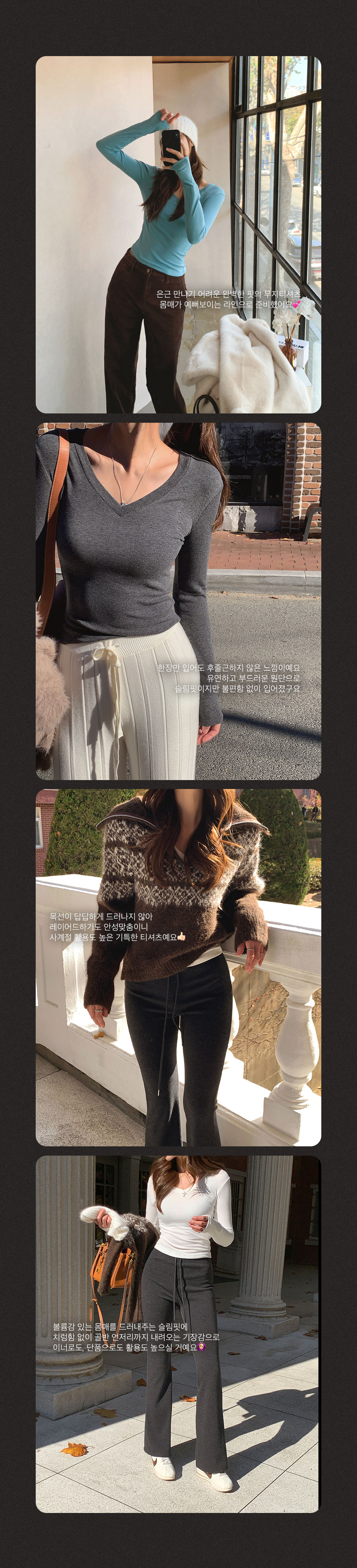 부츠컷은 확실히 다리를 더 얇고 길어보이게 만들어 제가 참 애정하는 팬츠 중 하나인데요 허리라인부터 허벅지까지는 밀착되지만 무릎 아래로는 은은한 세미 부츠컷, 옆으로 과하게 퍼지지 않고 적당히 초롬하게 떨어지는 핏이라 다리가 훨씬 길어보이고 슬림해 보이는 효과까지! 보통 부츠컷이라고 종아리부터 플레어지는 디자인이 많은데 종아리 군살 있으신 분들은 오히려 부각되어 보이거든요 이 슬랙스는 무릎 시작점부터 잔잔히 플레어지며 내려오니 체형커버도 확실히 되면서 핏도 부담스럽지 않아 감추고 싶은 단점은 확실히 가려진다는 점!