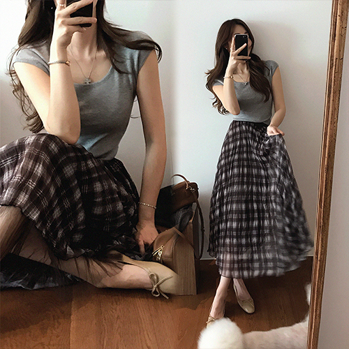 플레어스커트와 러블리한 무드로 입어도 좋답니다