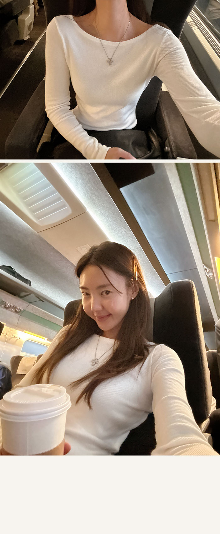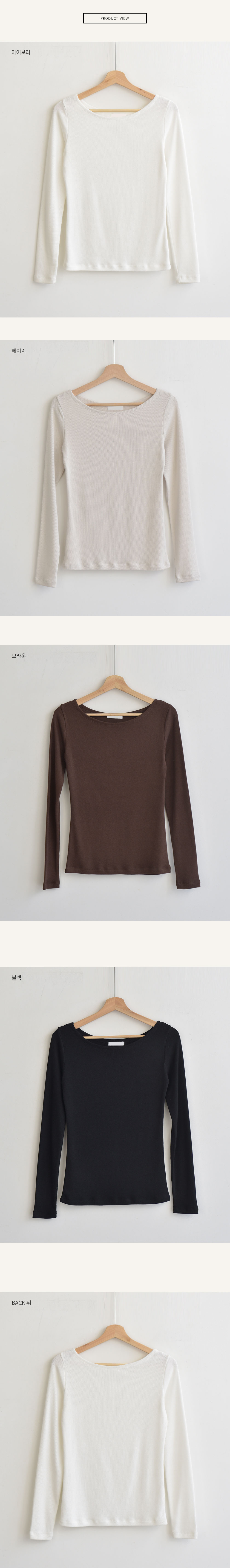 가로로 길게 빠진 보트넥의 매력을 느낄 수 있는 티셔츠예요