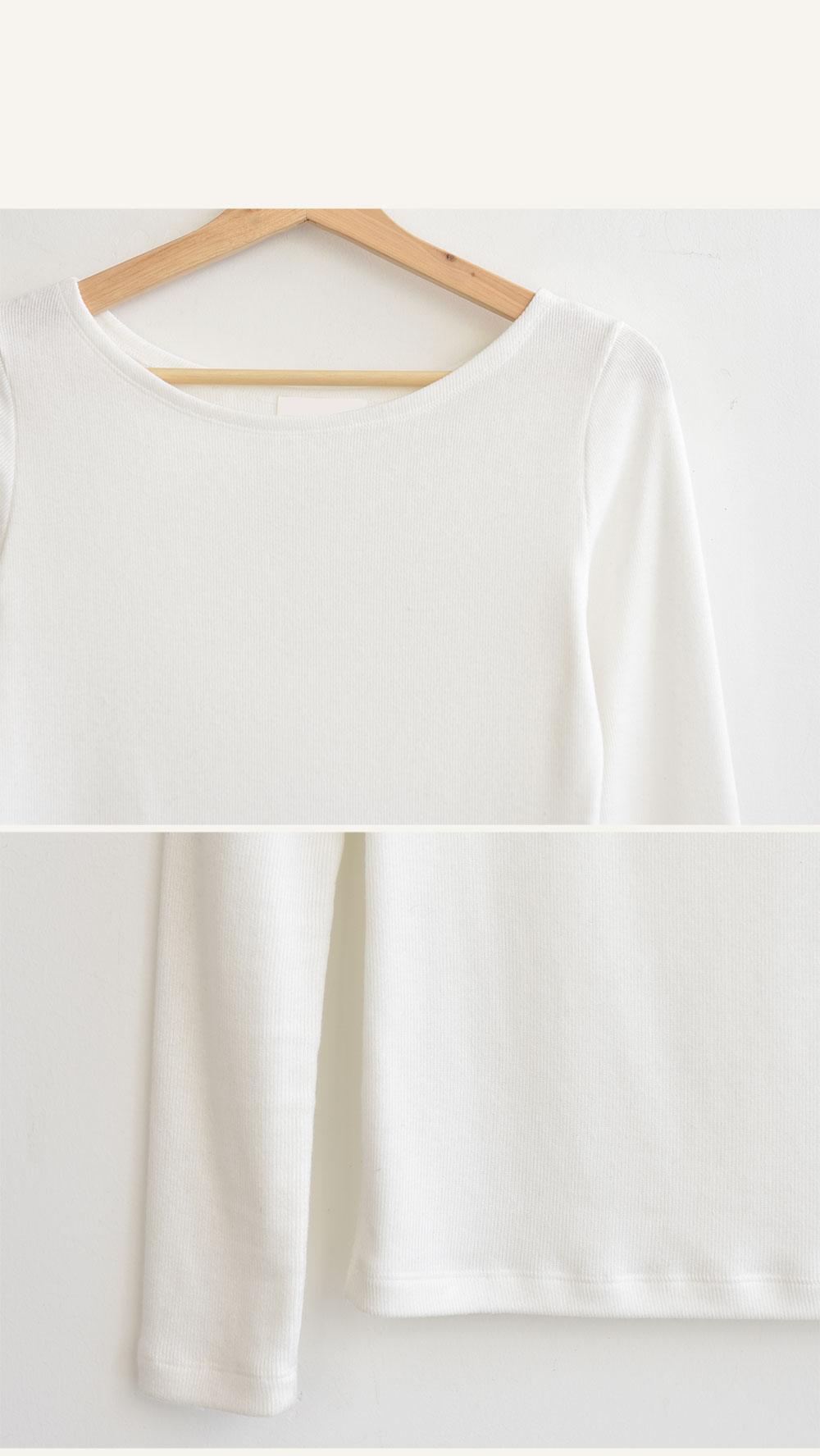 잔잔한 골지패턴이 들어가 상체는 가녀리게 보여지며