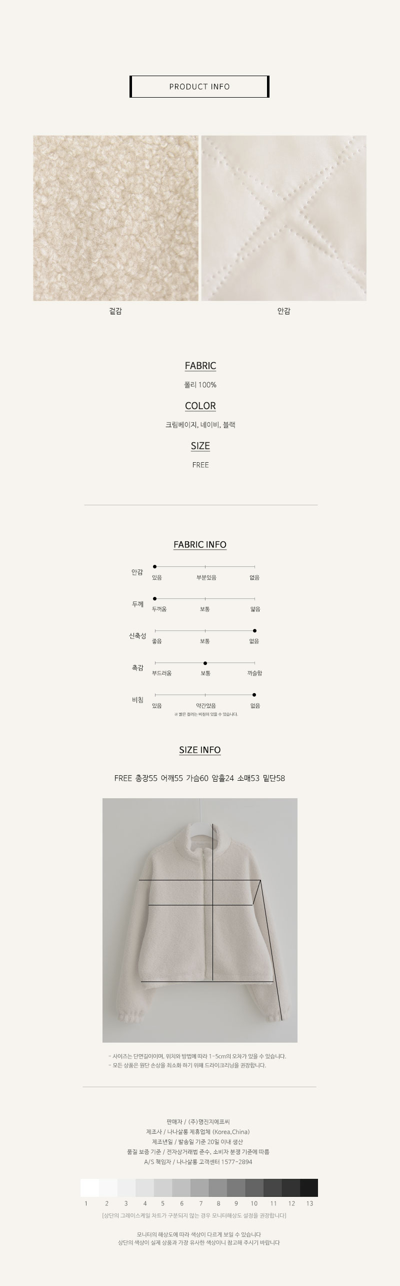 부드러운 터치감의 보아털이 빼곡하게 들어가있어 후줄근함은