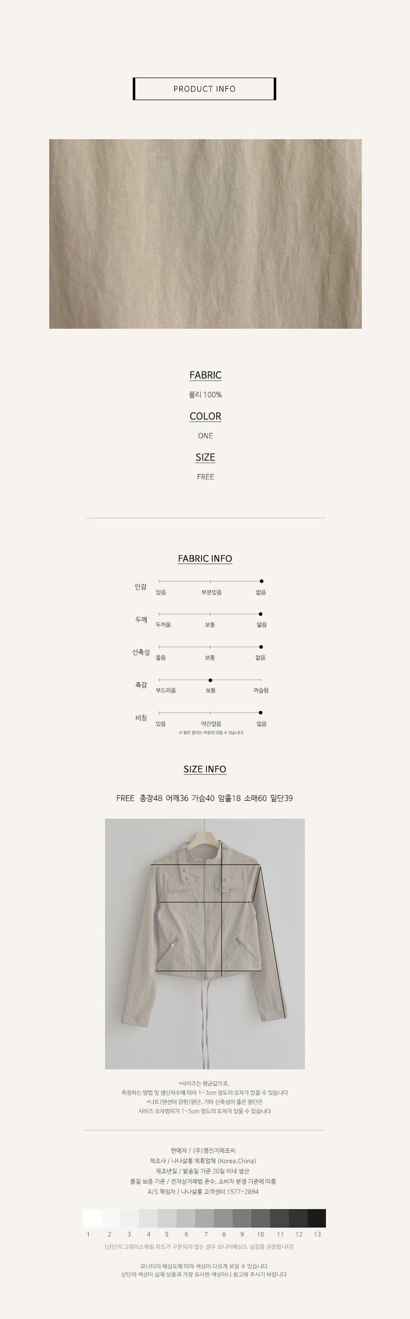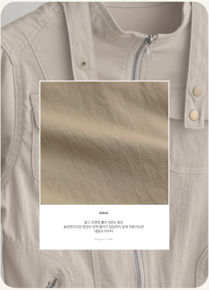 얇은 원단으로 제작된 슬림핏 야상점퍼예요