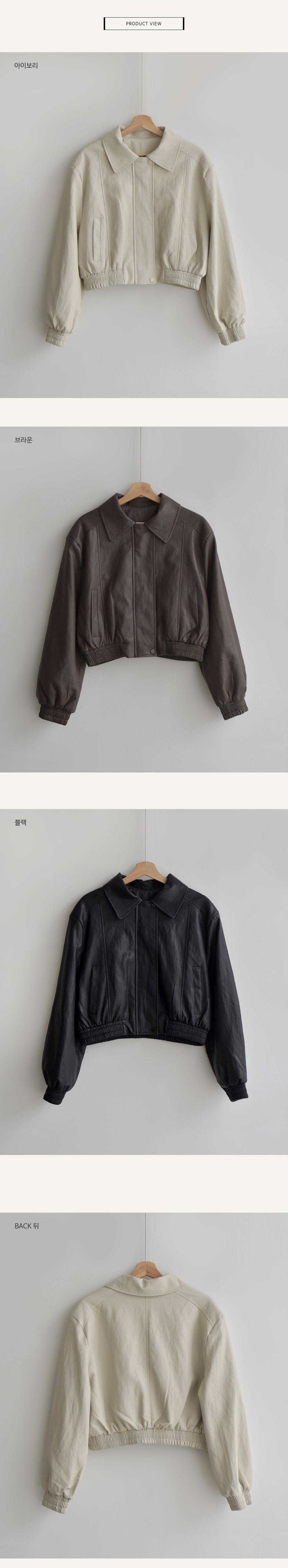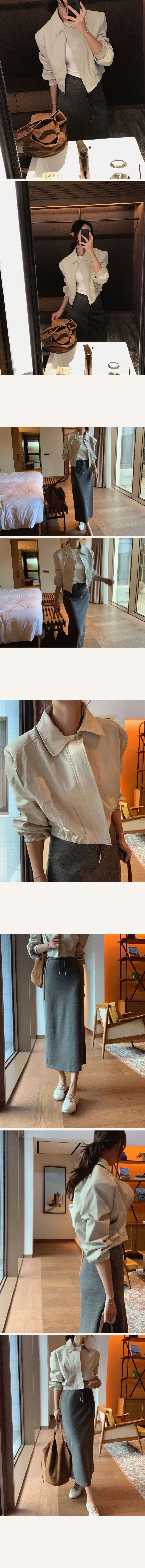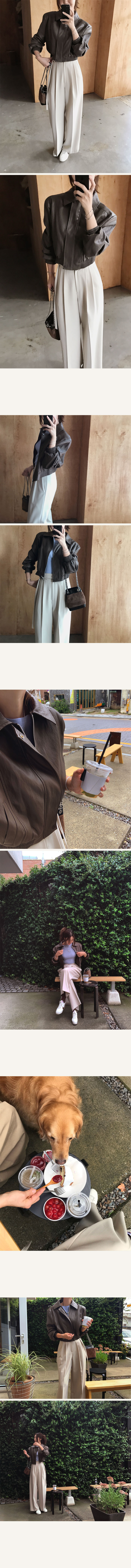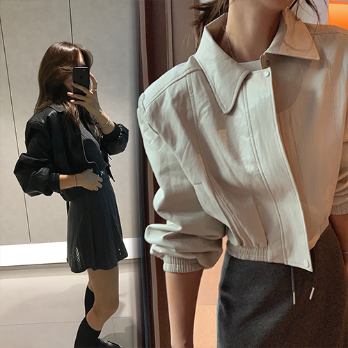 깔끔한 스탠카라넥이예요 실버 메탈지퍼로 클로징되는 점퍼형식으로