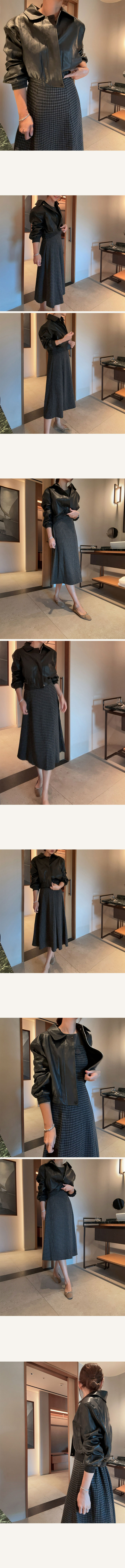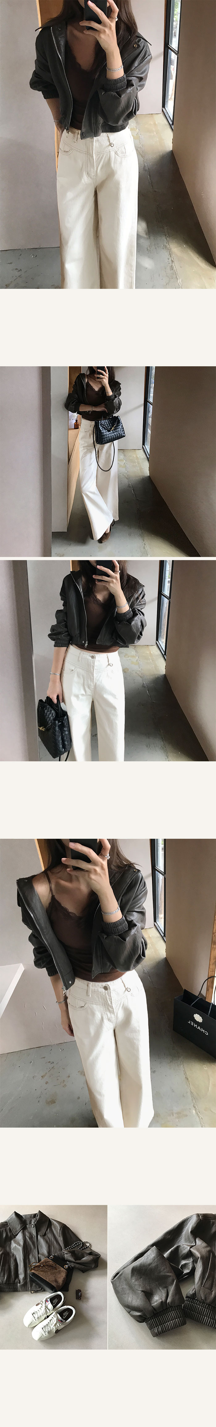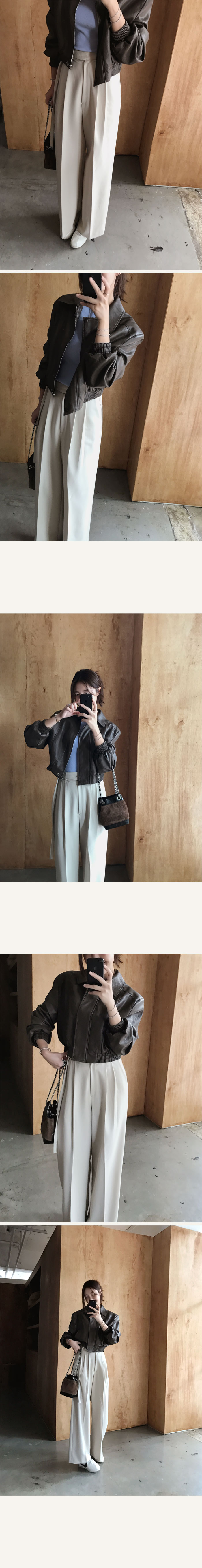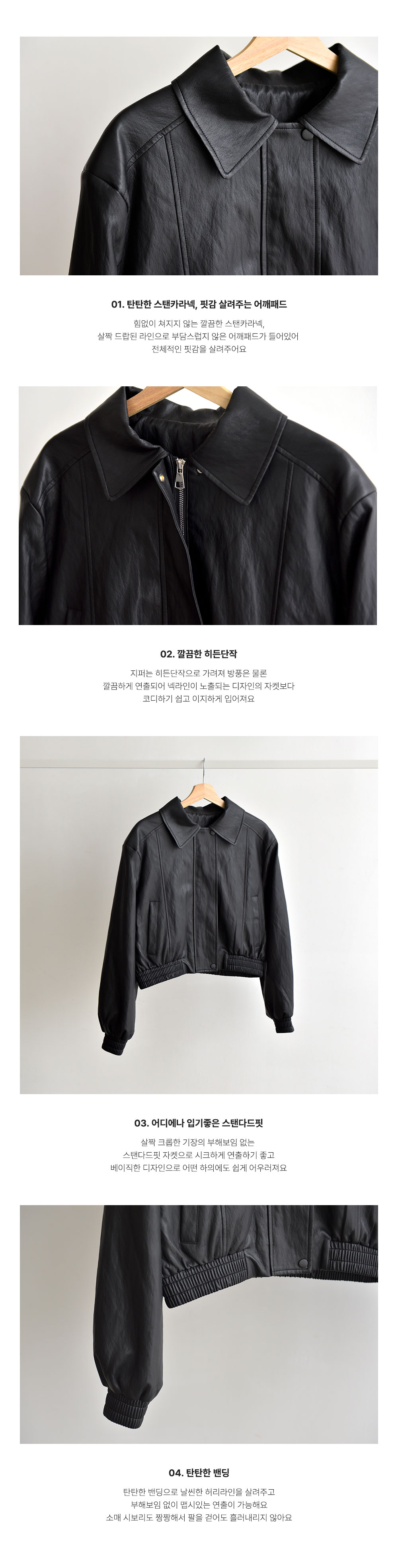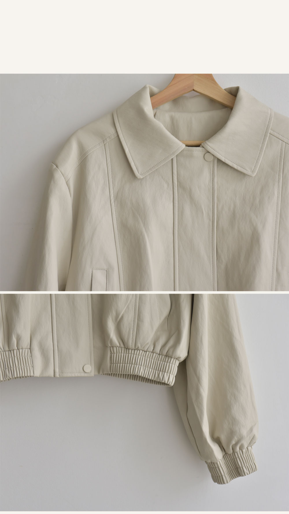습식가공된 비건레더를 사용해 부드러운 양가죽 질감의 자켓이예요