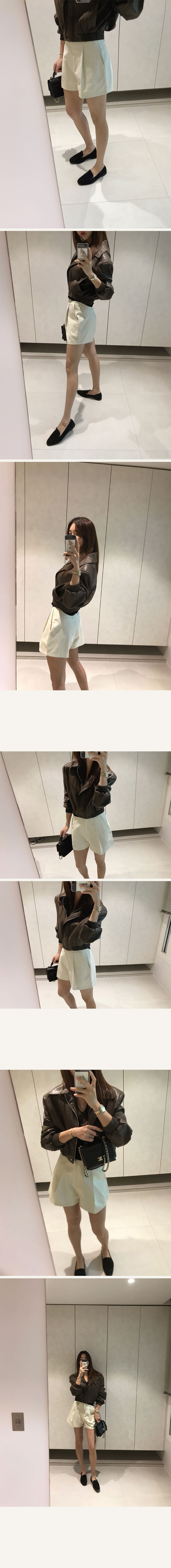 골반 위까지 떨어지는 깔끔한 기장으로 밑단에 밴딩이 들어가