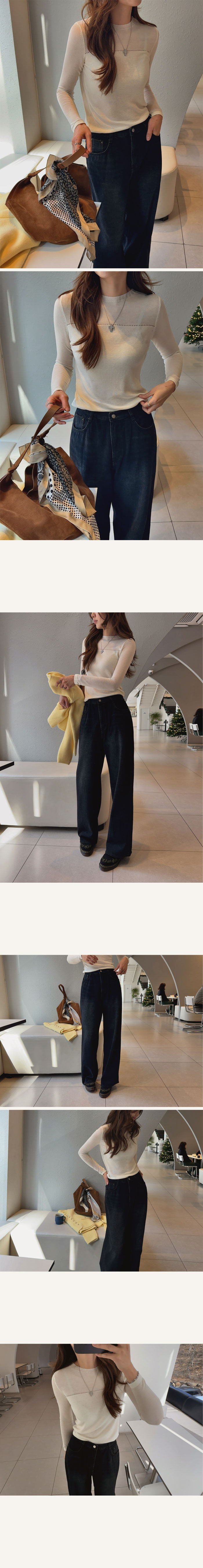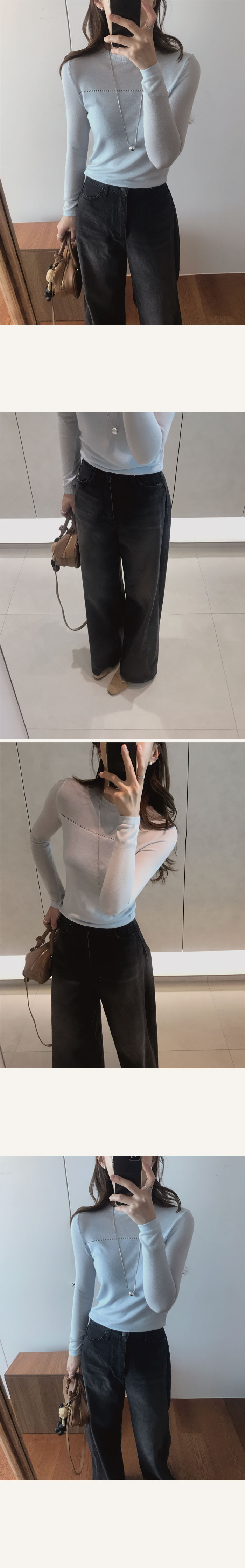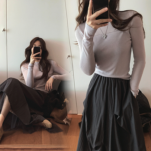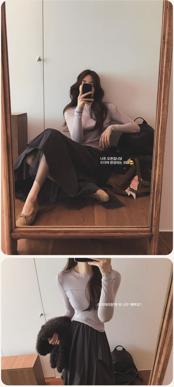 라운드넥으로 노출은 없지만 두께감덕분에 살결이 은은하게 비쳐져