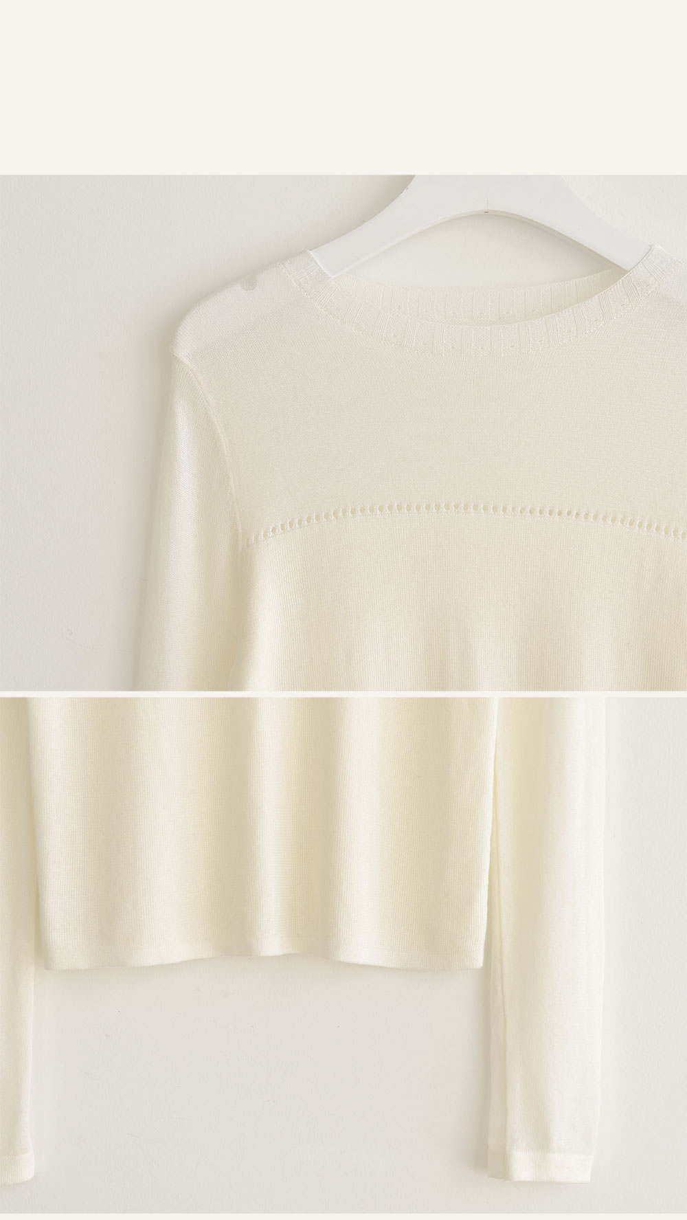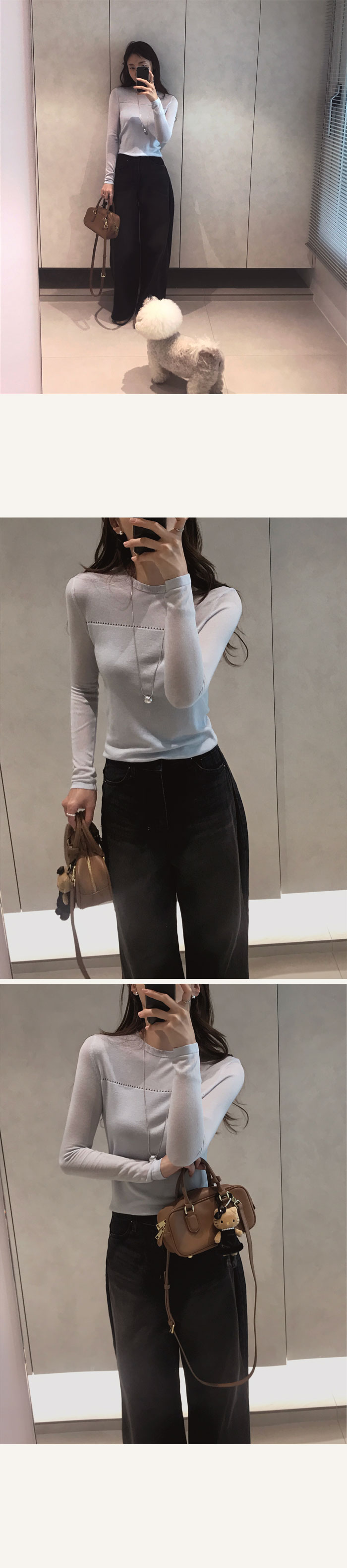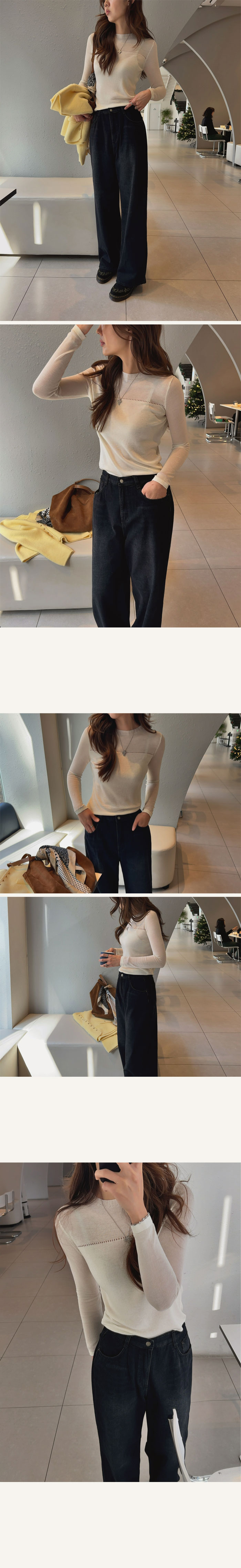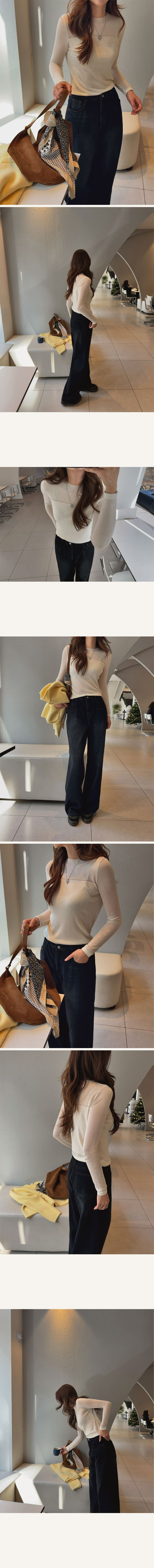 라운드넥으로 노출은 없지만 두께감덕분에 살결이 은은하게 비쳐져