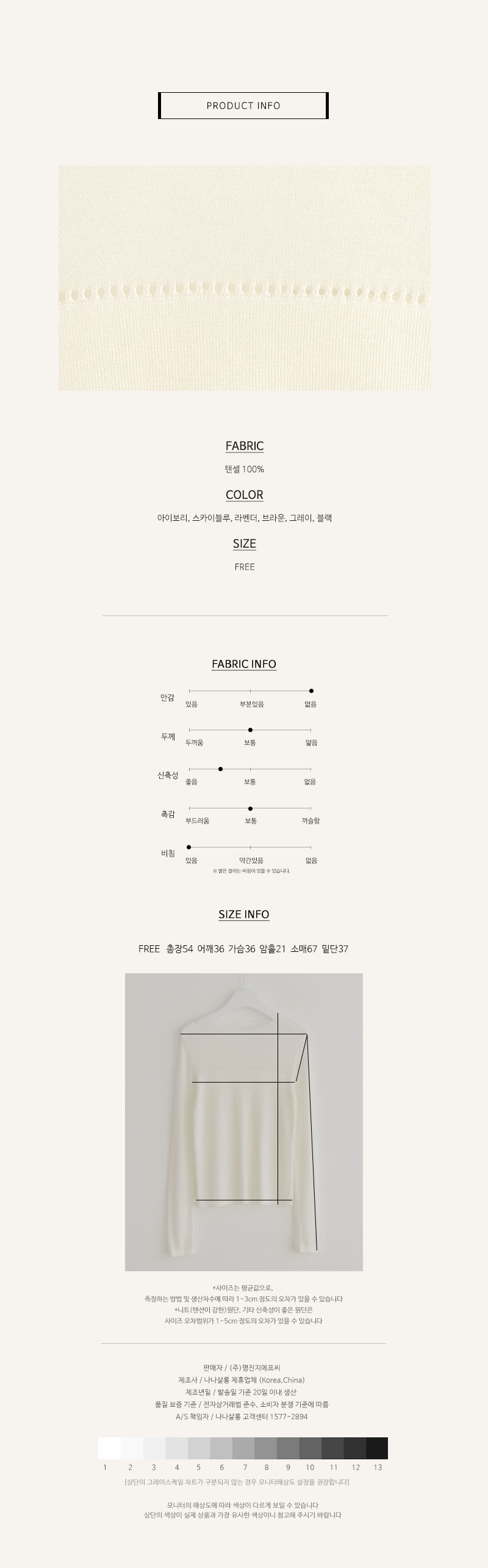 연출해주셔도 부담없을것같아요 소매끝부분에는 얇게 시보리로 마감되어