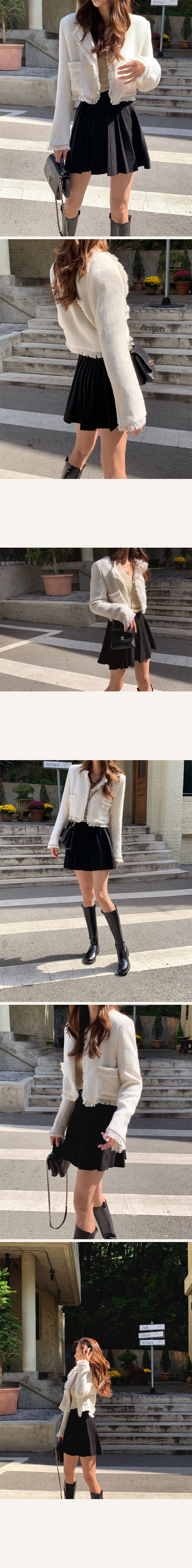 한방향으로 주름을 잡아준 플리츠 디테일이 사랑스러운 무드를 더해주며