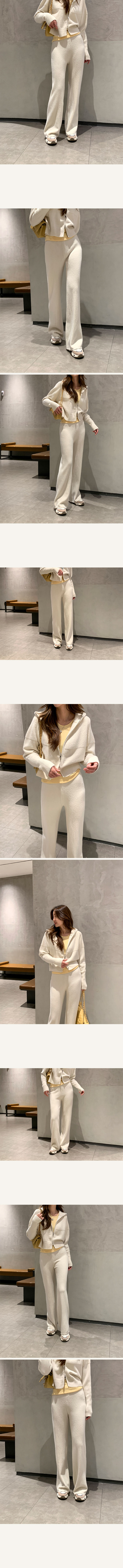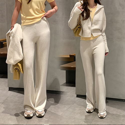 니트팬츠는 롱한 기장감이라 트렌디하고 롱한 레그라인으로 완성!