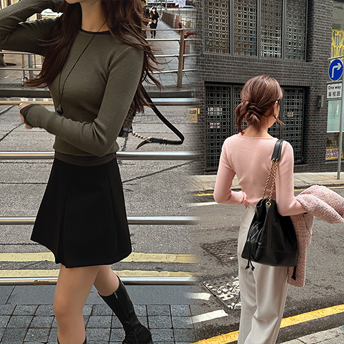 라운드넥라인으로 부담스럽지않고 단정한 느낌으로 매치하기도 좋으며