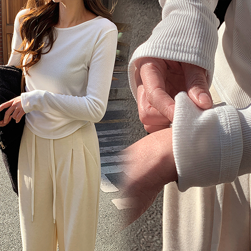 잔잔한 골지원단으로 밋밋하지 않았구요 속에 기모가 얇게 들어가
