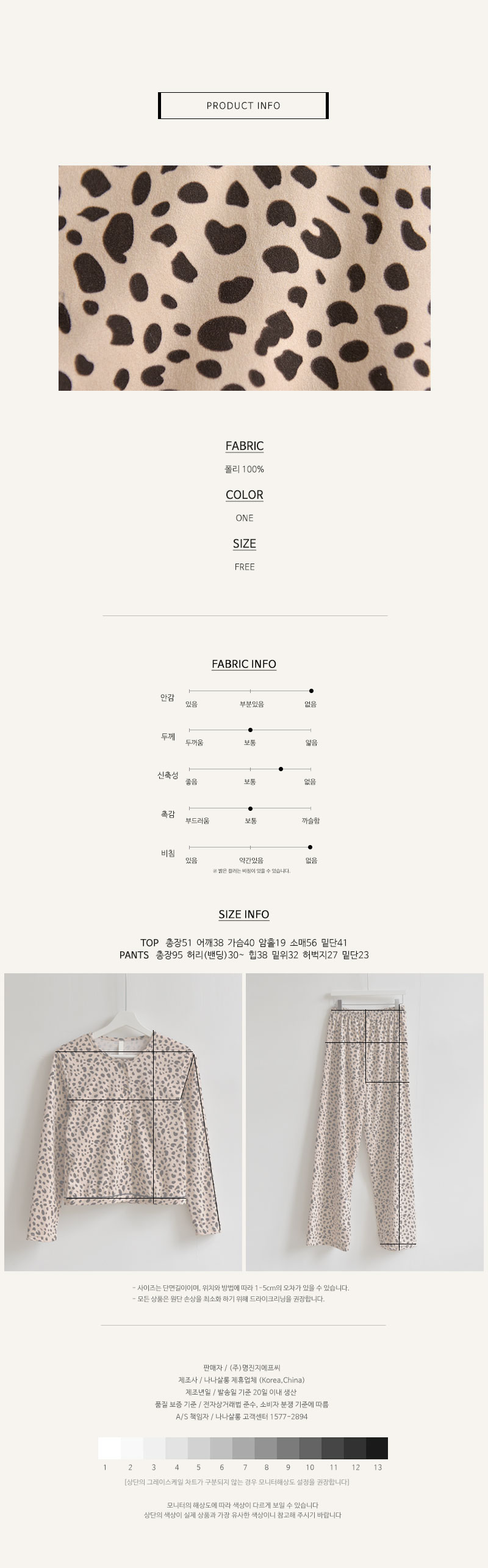 FREE사이즈의 잠옷이예요
