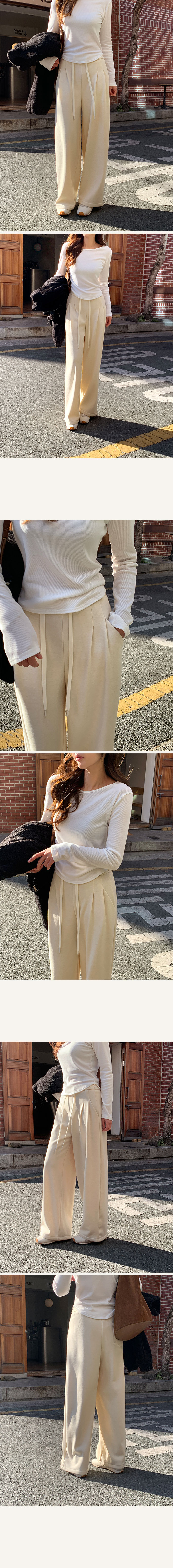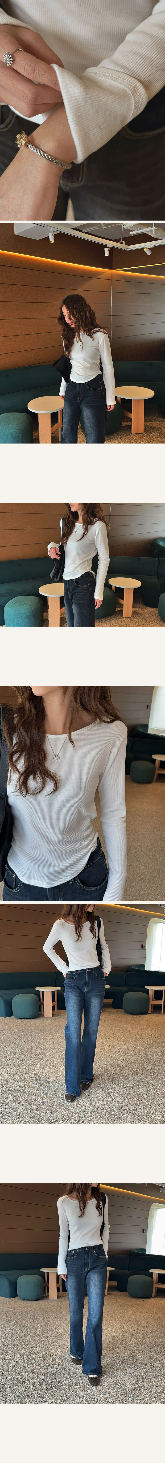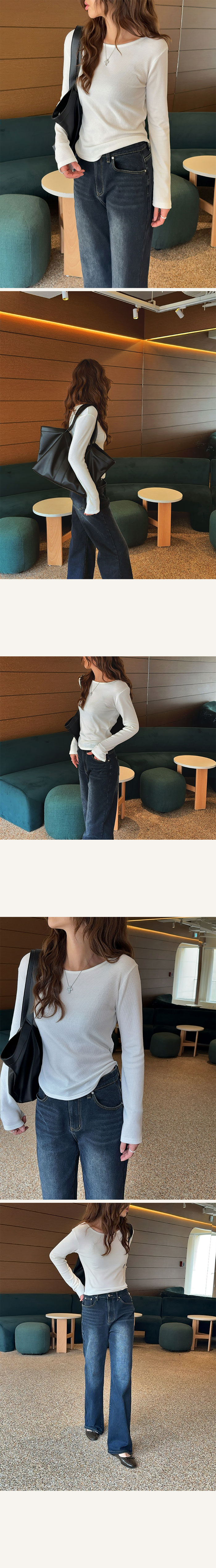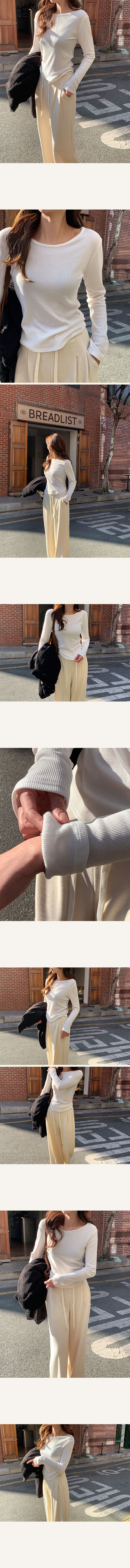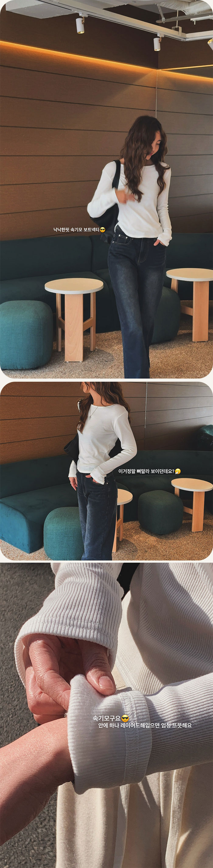 몽글몽글 부드러운 느낌으로 착용되는 보트넥티셔츠예요