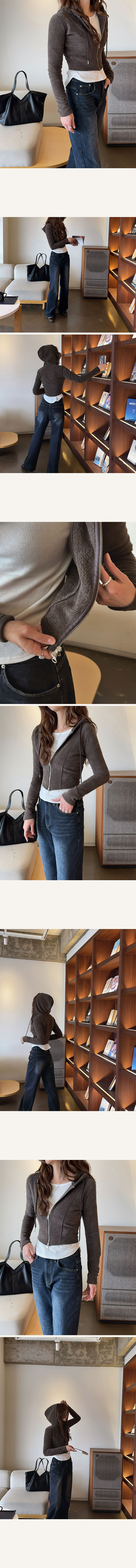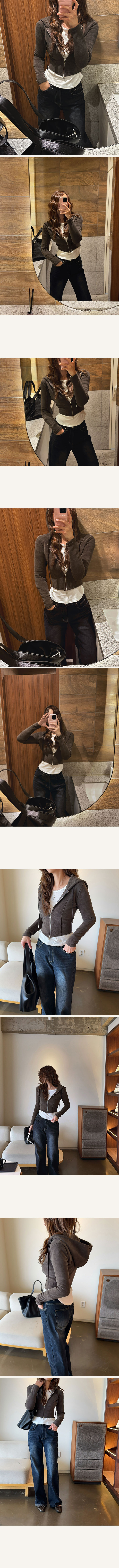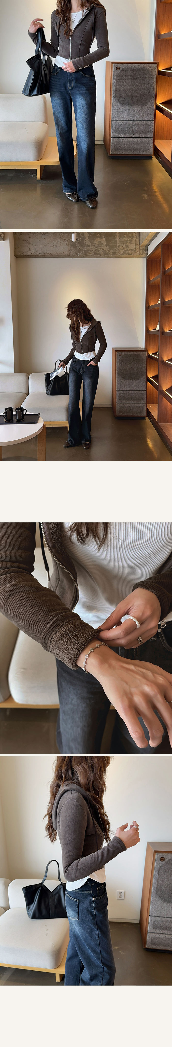 골반언저리까지 내려오는 깔끔한 기장감으로 하의 매치에 어려움이