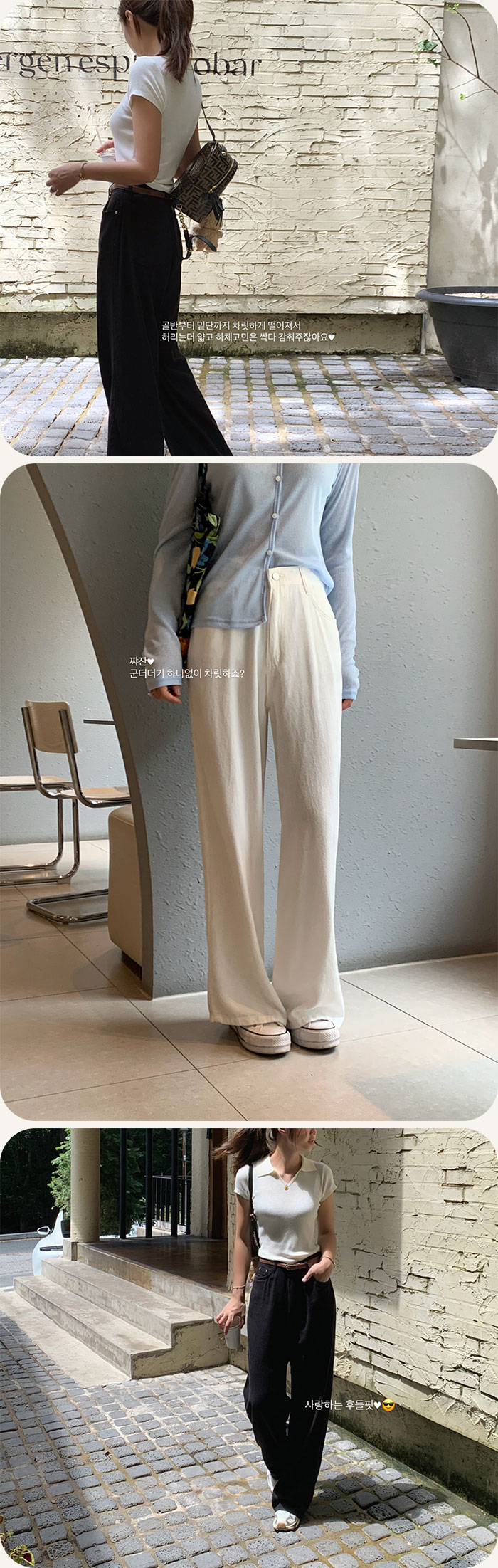 딱! 요런 옷이라고 할 수 있는 후들후들한 얇은 원단감의 팬츠 소개해 드릴게요