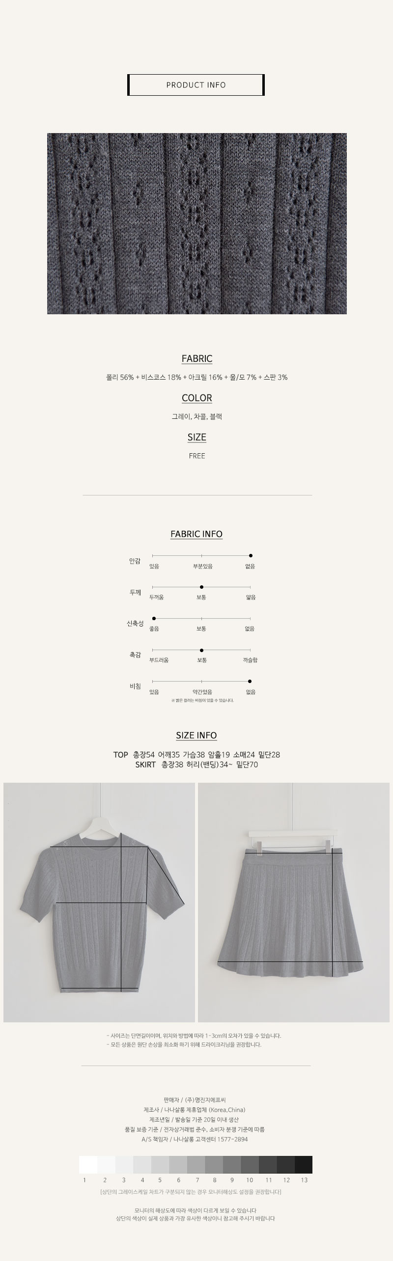 스커트구성이구요 원단전체에 아일렛짜임으로 되어 살결이