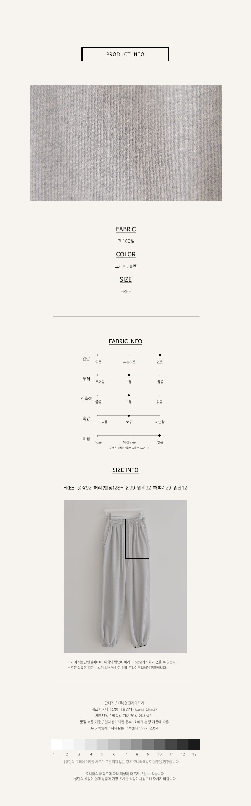 FREE사이즈의 조거팬츠예요