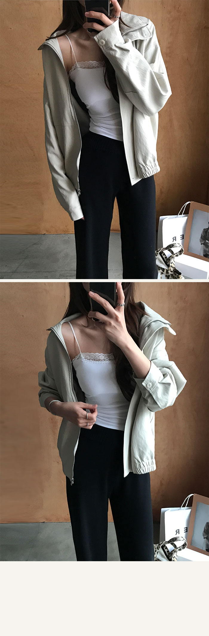 여리한 실루엣 연출을 도와주는 집업디자인이예요