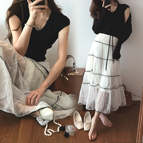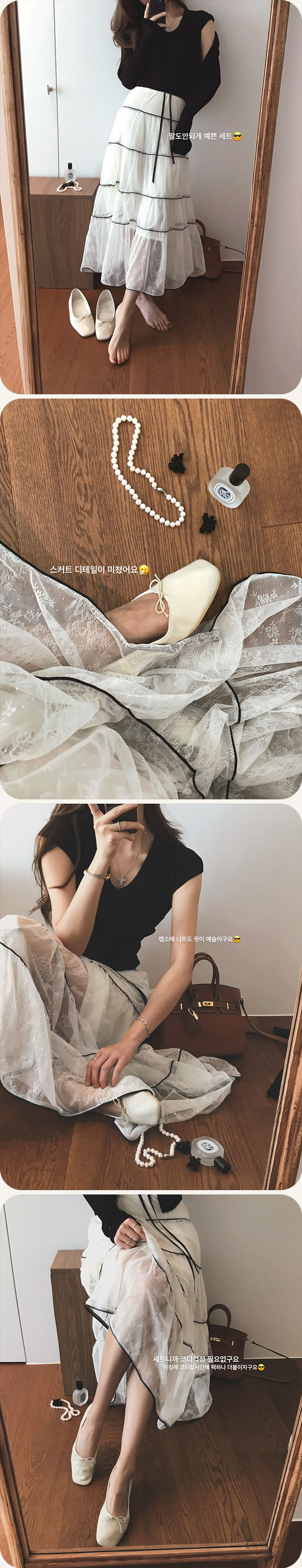 스커트도 하늘하늘한 소재로 롱기장이지만 한여름까지 부담없이