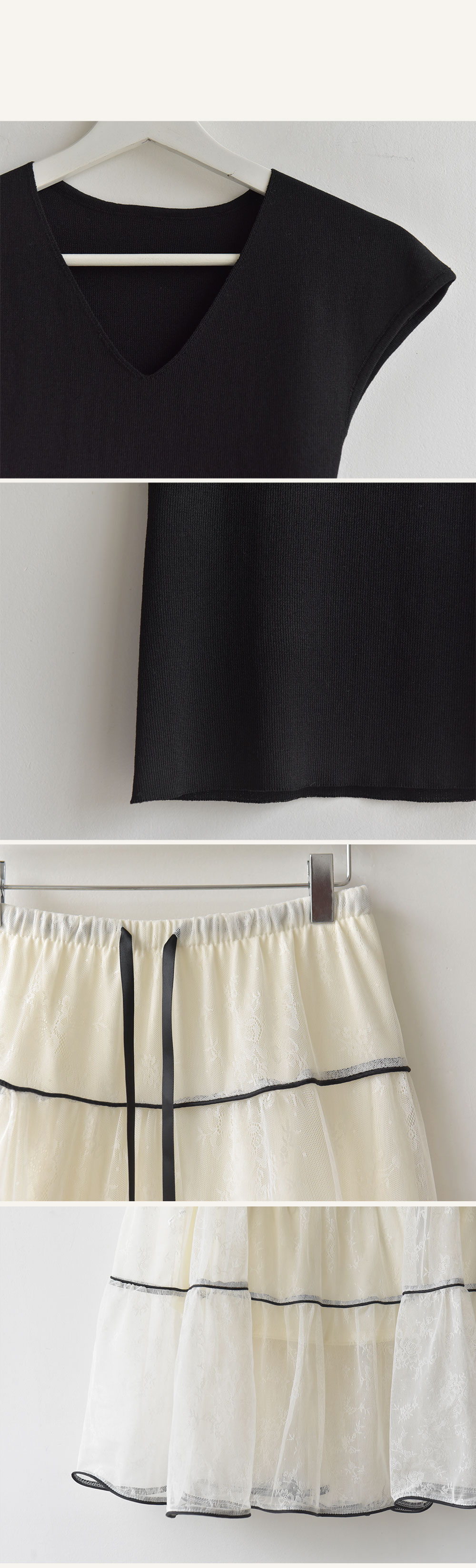캡소매니트와 레이스 캉캉 스커트의 조합으로 그냥 봤을땐