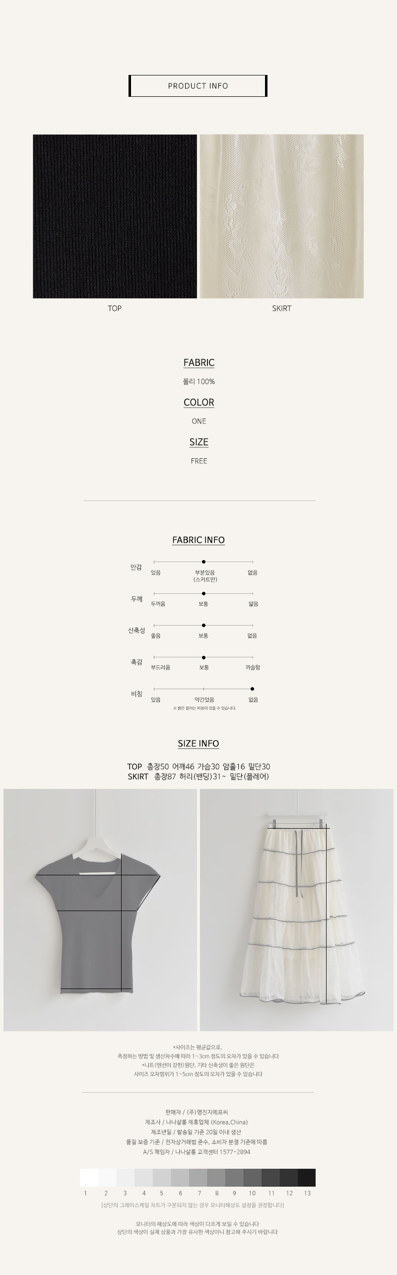 폴리 100% 원단이예요 캡소매 탑은 여름니트원사로 텁텁함 없이