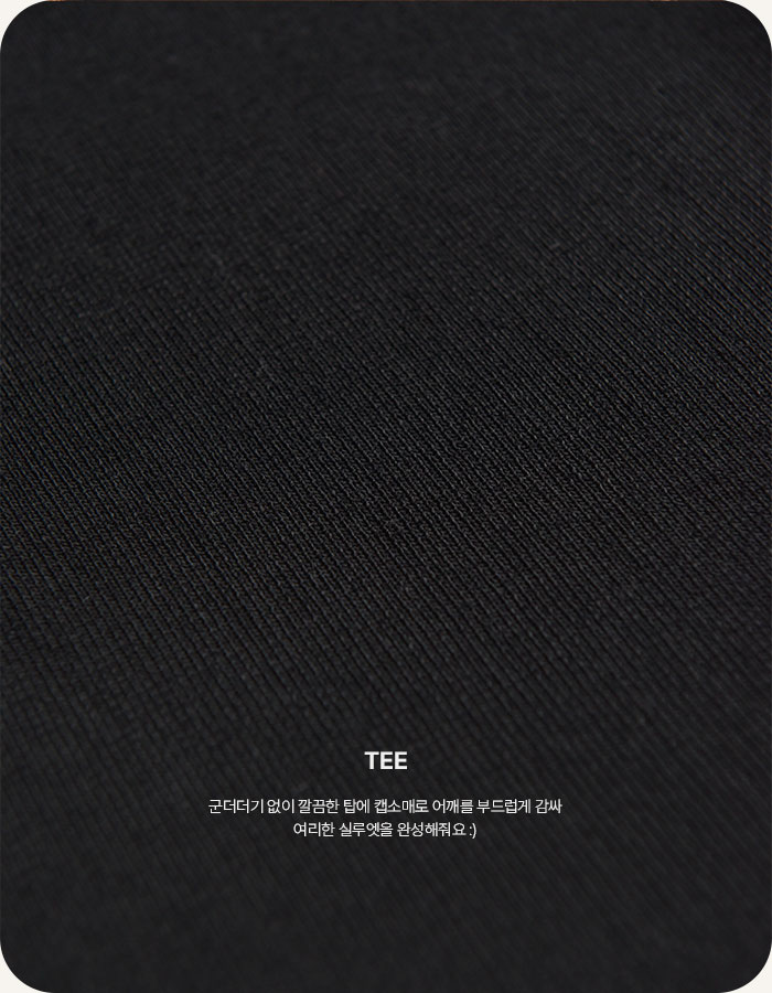 살짝 내려오는 캡소매로 겨드랑이 노출의 염려도 없고 어깨를 살포시