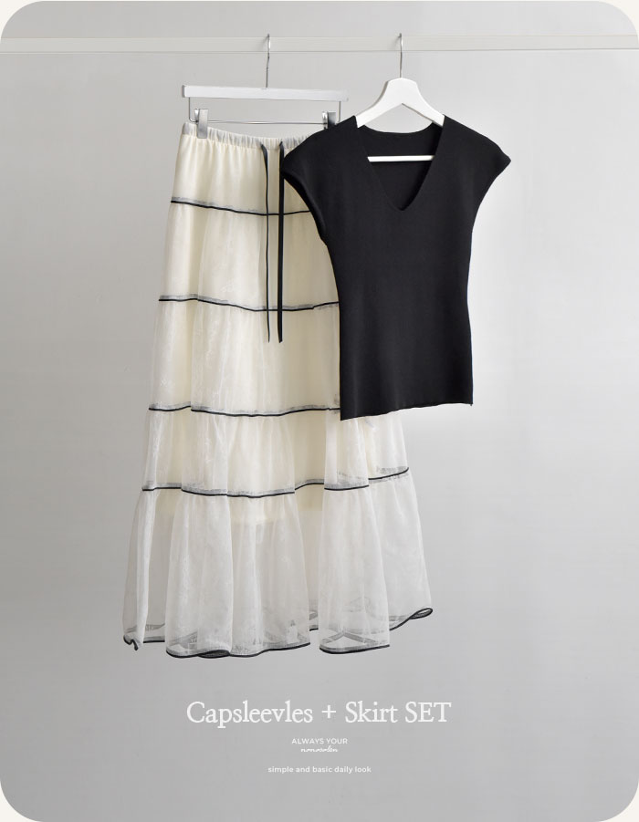 가녀리고 여성스러운 룩으로 완성스켜주는 샤 스커트세트예요