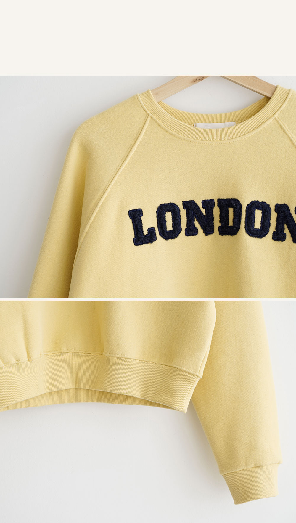 레글런 어깨 봉제, 손등까지 덮이는 소매기장과