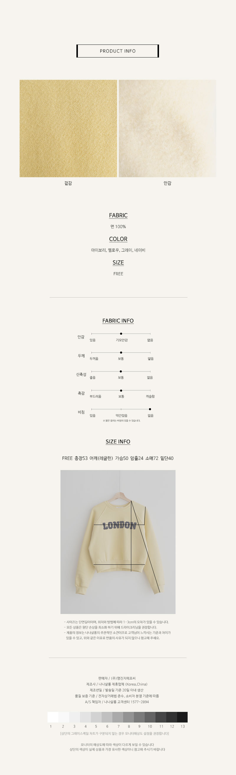 아이보리(품절)/옐로우/그레이/네이비(품절)