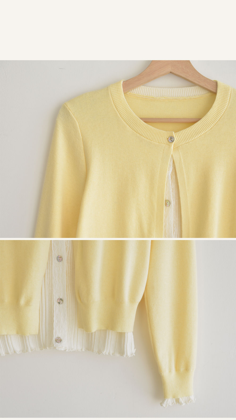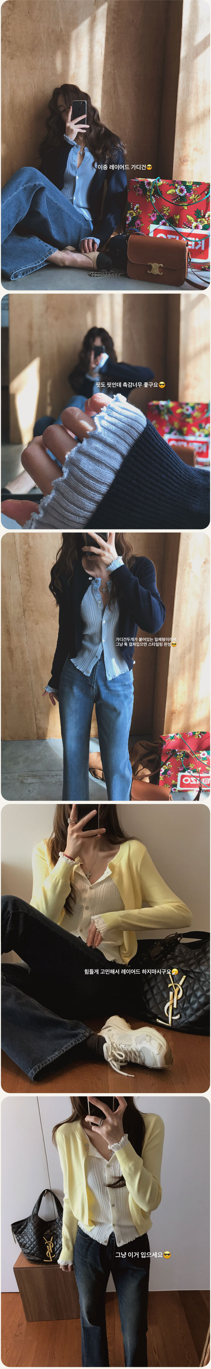 니트 두개를 레이어링한듯한 효과를 주는 이중 가디건이예요