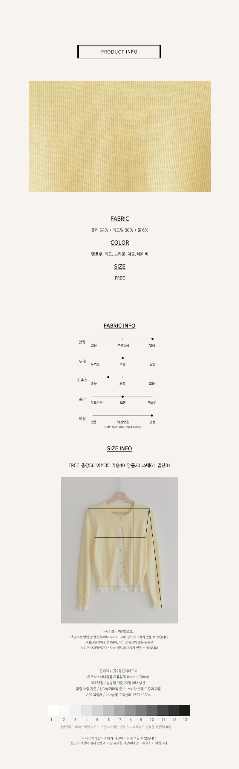 FREE 사이즈 가디건이예요 평소 M사이즈를 착용하는 저에게