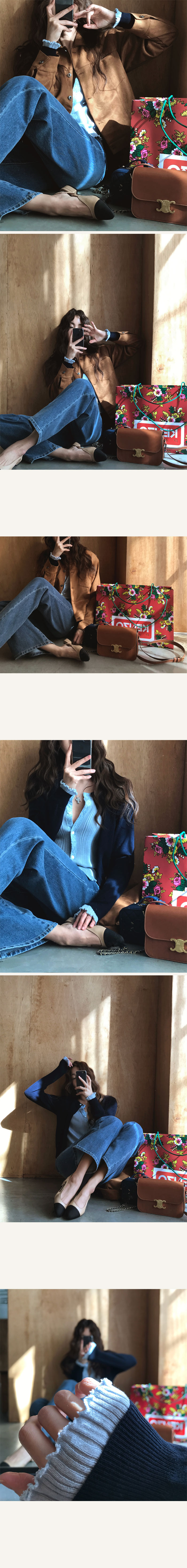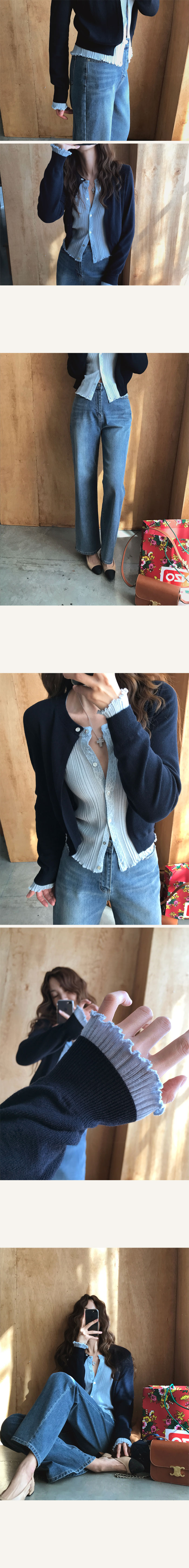 제격인것같아요 소매끝단에도 속 원단을 살짝 빼내어 마치 프릴 디테일