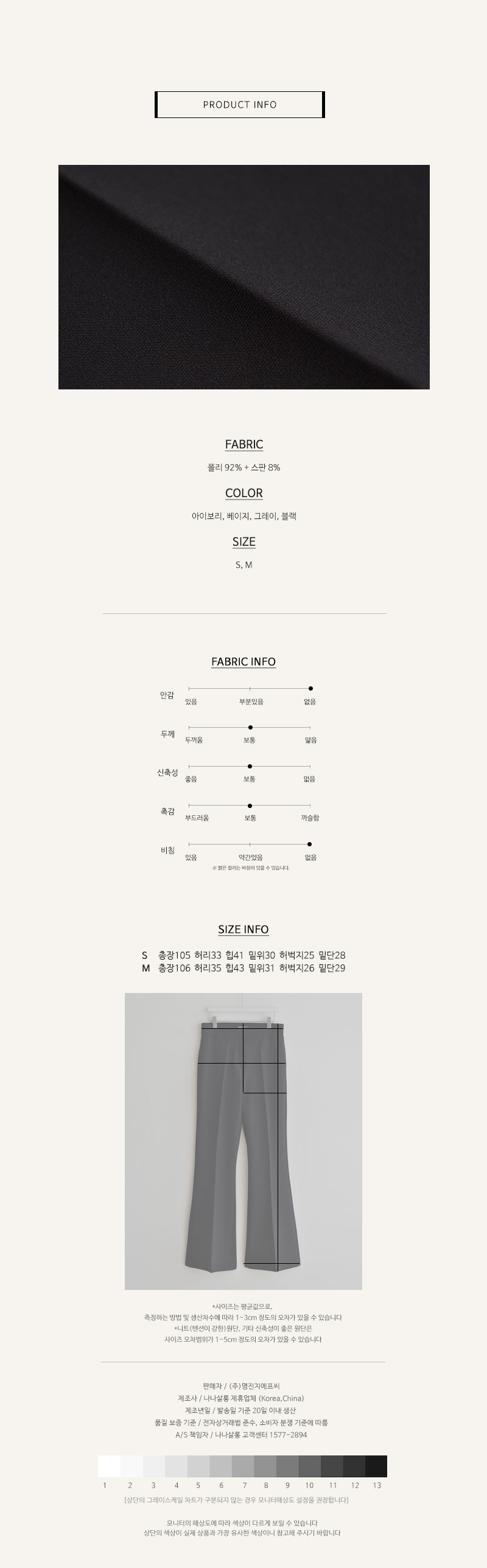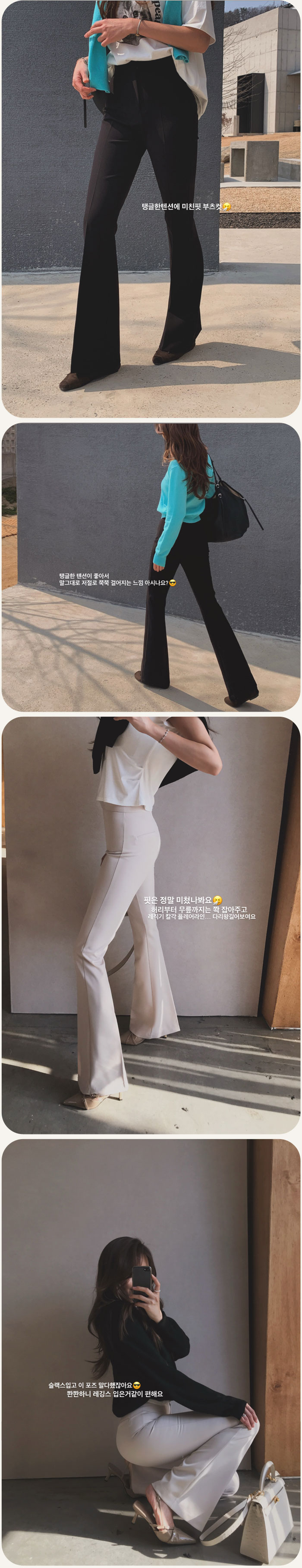 핏은, 허리부터 힙까지 싹 잡아주고 밑단은 살짝 퍼지는 부츠컷 라인으로