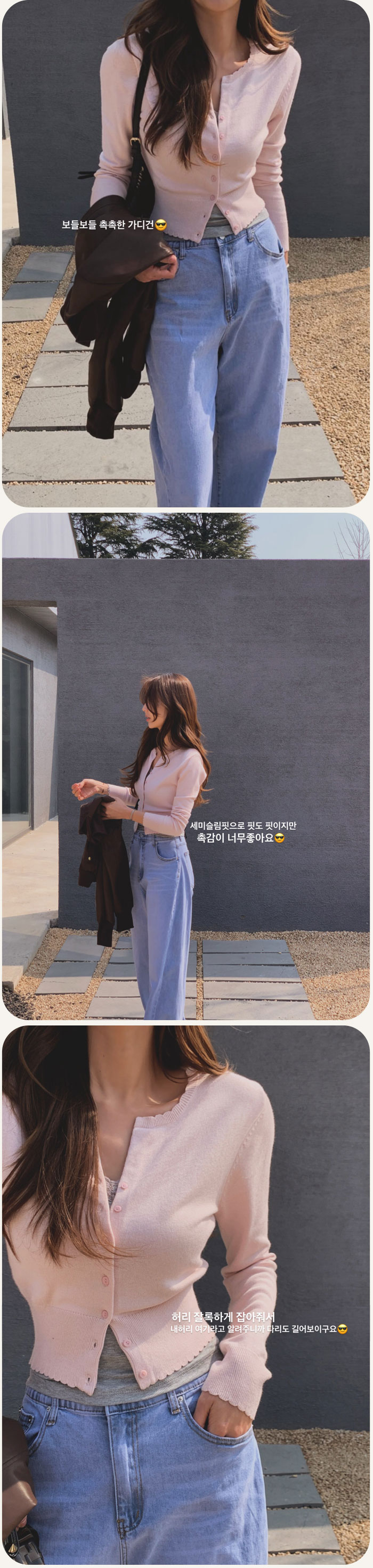 세미슬림핏에 크롭한 기장, 거기에 스칼럽디테일이